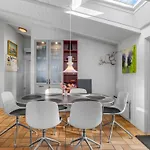 L’alloggio offre una cucina con tutti gli elettrodomestici necessari, come una lavastoviglie, un frigo e un forno.